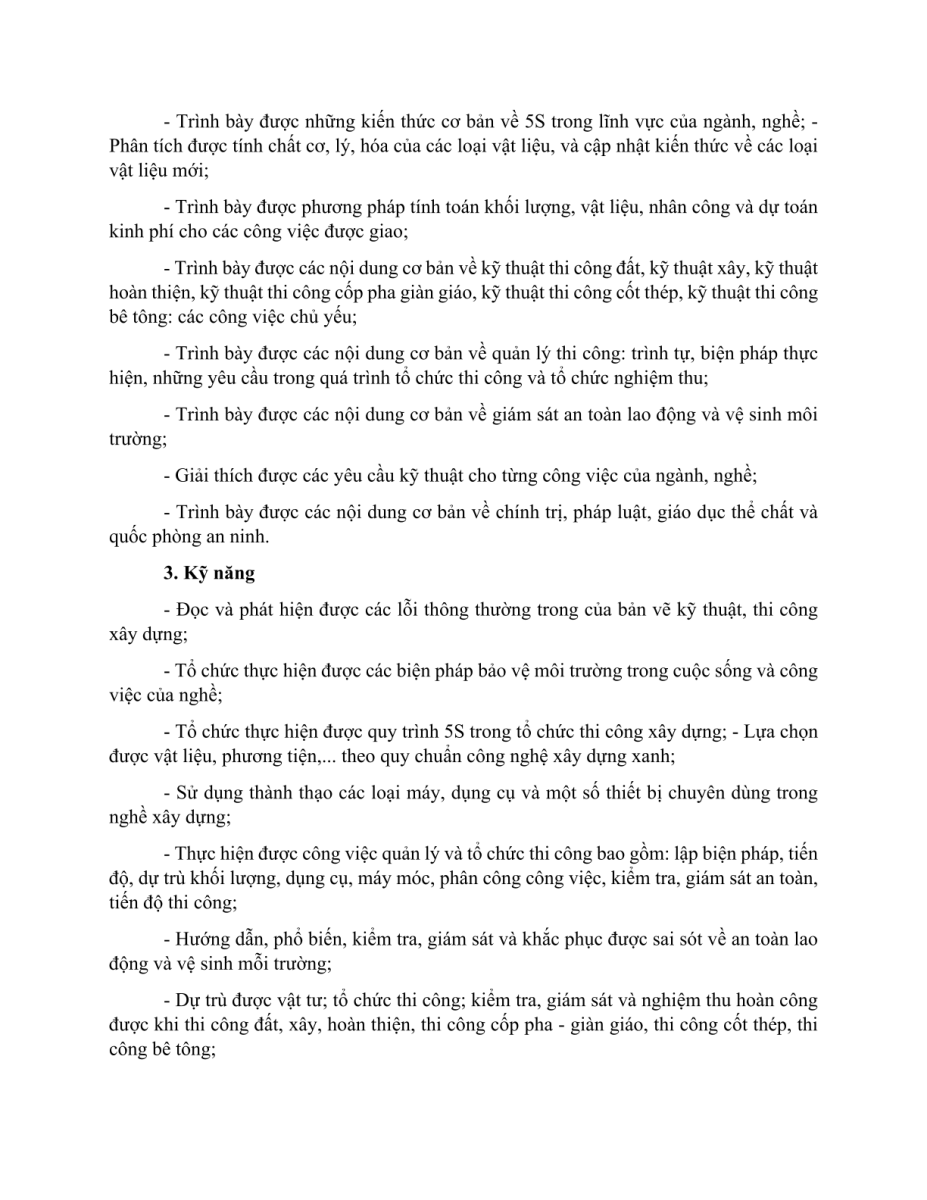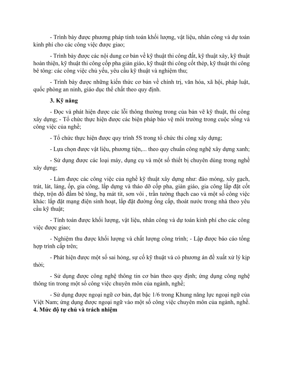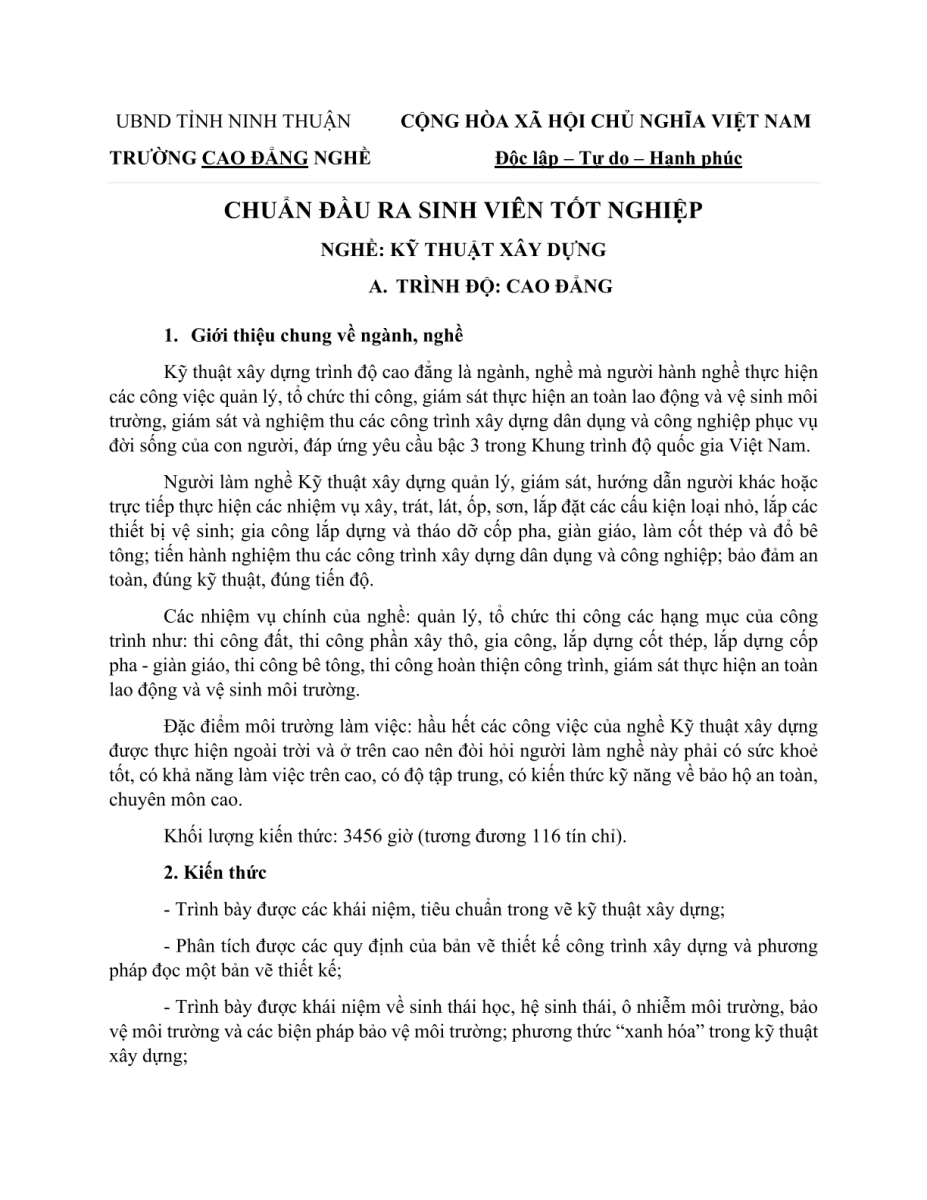 Chuẩn đầu ra nghề Kỹ thuật xây dựng Khóa 22