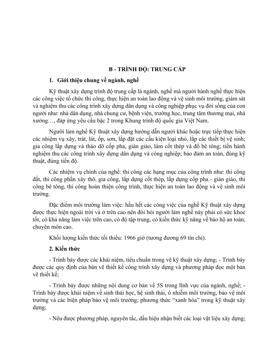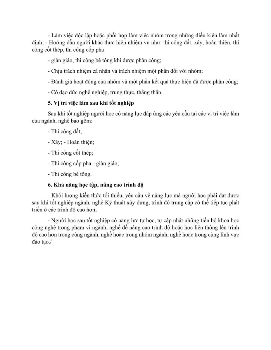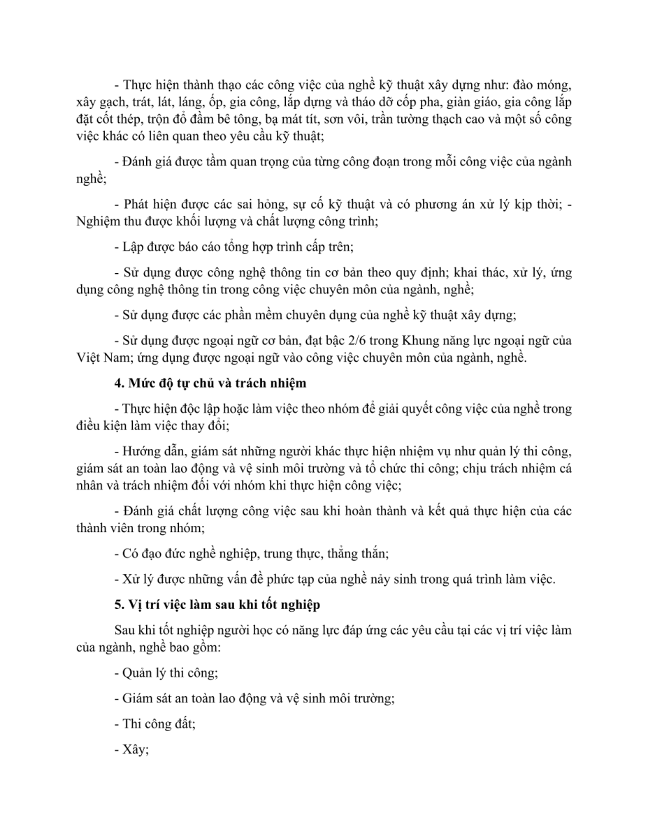Chuẩn đầu ra nghề Kỹ thuật xây dựng Khóa 22