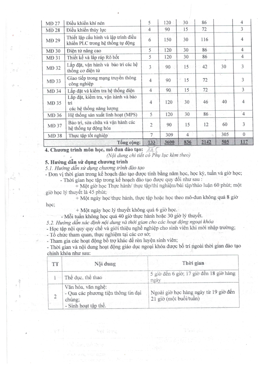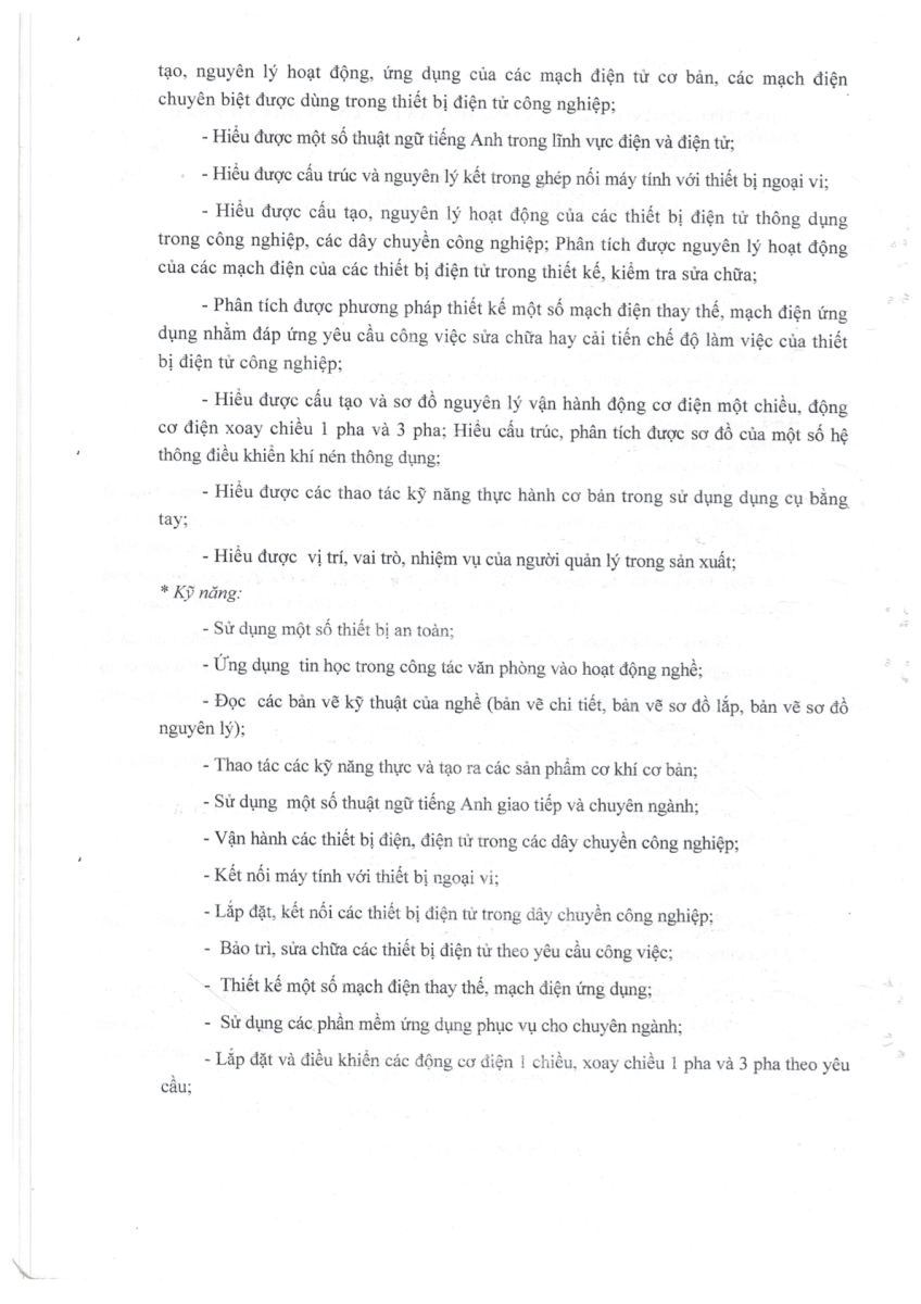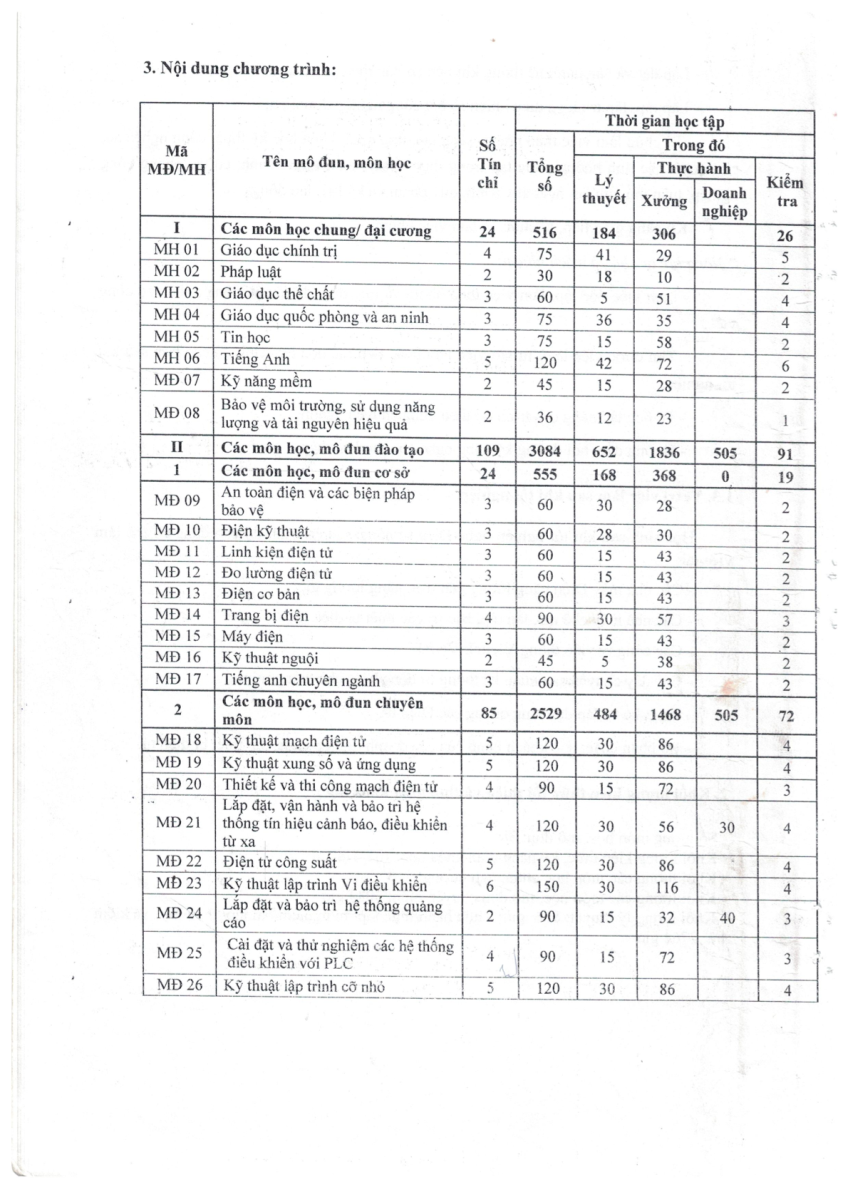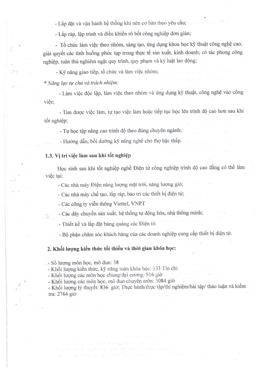 CHƯƠNG TRÌNH ĐÀO TẠO CAO ĐẲNG - ĐIỆN TỬ CÔNG NGHIỆP NĂM 2019