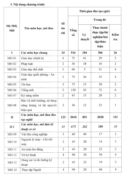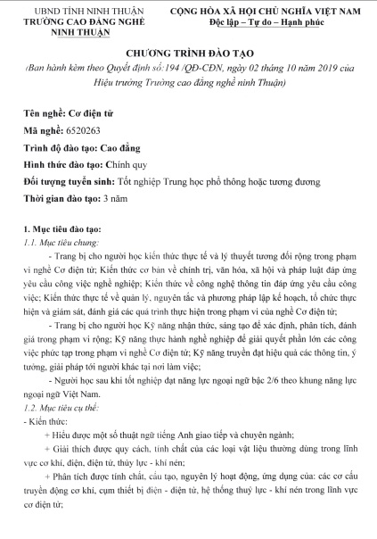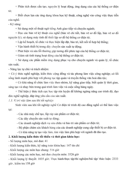 CHƯƠNG TRÌNH ĐÀO TẠO TRÌNH ĐỘ CAO ĐẲNG - NGHỀ CƠ ĐIỆN TỬ NĂM 2019