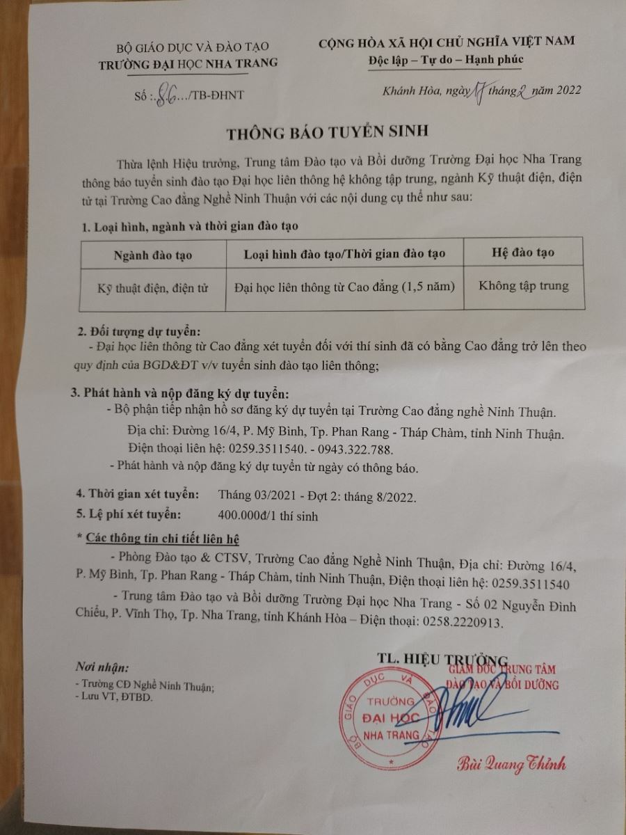 TRƯỜNG CAO ĐẲNG CÔNG NGHỆ - NĂNG LƯỢNG KHÁNH HÒA